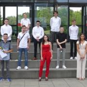Nachdem sich die Klassensprecher der einzelnen Klassen (Tobias Kieffer, R10a / Greta Leser, R10b / Jonathan Hepp, R10c / Jakob Neisser, R10d) bei ihren Klassenlehrern (Klaus Lehmann, Tobias Schulz, Alexander Rothenhäusler und Markus Wellinger) bedankt hatten, wurden die Zeugnisse feierlich überreicht.