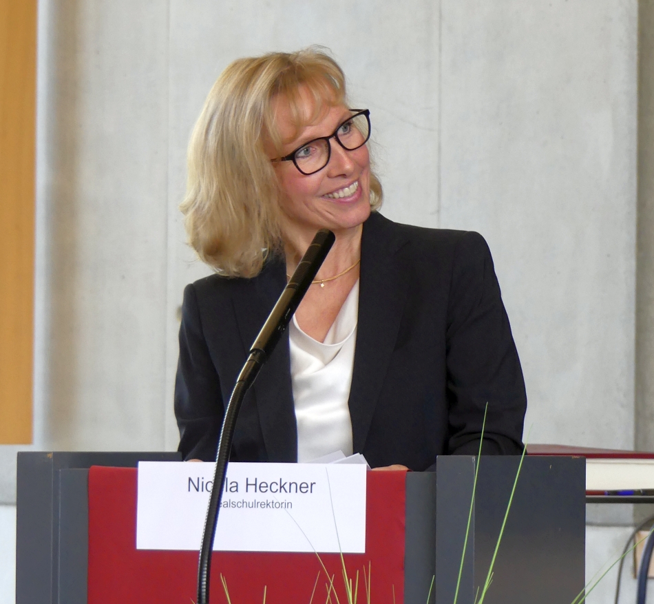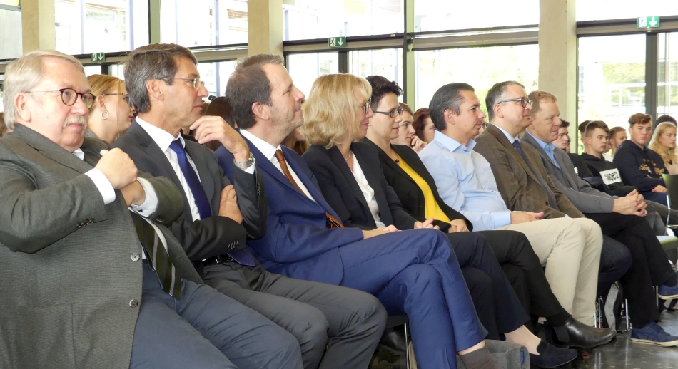 Nach einem herzlichen Willkommen an Herrn Dr. Wolfgang Schäuble, auch im Namen von Herrn Oberstudiendirektor Pfister, begrüßte Frau Heckner außerdem Herrn Helmut Rau (früherer Kultusminister des Landes Baden-Württemberg), Frau Marion Gentges (Landtagsabgeordnete), Herrn Wintermaier (Wahlkreisreferent), den stellvertretenden Stiftungsdirektor der Schulstiftung Herrn Schwörer und den Bürgermeister der Stadt Ettenheim Bruno Metz.