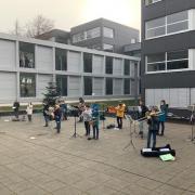 In der fünften Stunde verabschiedeten sich die Schülerinnen und Schüler gemeinsam von ihren Klassenlehrerinnen bzw. -lehrern voneinander in die Weihnachtsferien. Der Weg aus dem Schulgebäude wurde von Tau-Band unter der Leitung von Daniel Gaschick musikalisch begleitet: Viele verließen so singend, schwingend und mit einem Lächeln auf dem Gesicht die Schule.