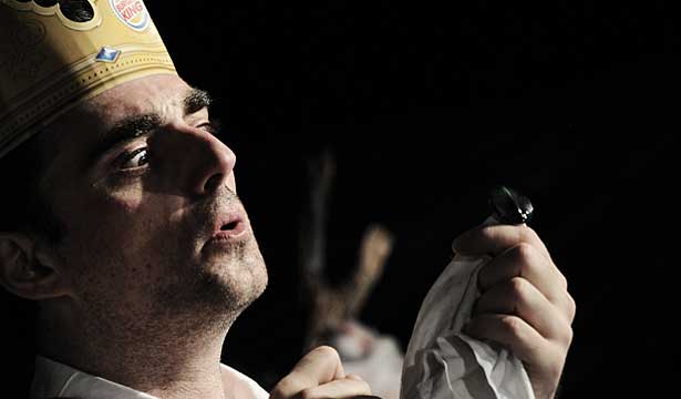 Theater im Klassenzimmer – ein scheinbar bequemes Vergnügen, denn Schülerinnen und Schüler müssen sich nicht auf den Weg ins Theater machen, sondern das Theater kommt in ihren Alltag. Die Inszenierung „Büchner. Die Welt. Ein Riss“ bringt auf diesem Wege Schülerinnen und Schülern die Gedankenwelt Georg Büchners wortwörtlich nahe, denn die Schüler sitzen nur wenige Meter von der Bühne, die das halbe Klassenzimmer füllt und der Schauspieler sucht in diesem Einmannstück immer wieder Augenkontakt und die Nähe zum Publikum. So werden fließende Übergänge geschaffen zwischen den Hauptfiguren der Dramen „Leonce und Lena“, „Woyzeck“ und „Dantons Tod“ sowie dem mit dem Wahnsinn ringenden Lenz aus der gleichnamigen Erzählung. Hineinmontiert sind Passagen aus Büchners Briefen und politischen Schriften. Durch die beeindruckende Spielleistung und die körperliche Nähe zwischen Schauspieler und Publikum entsteht dann jedoch keine bequeme, aber eine dichte Atmosphäre, in der assoziativ zentrale Gedanken und Motive aus Büchners Werk szenisch umgesetzt werden.