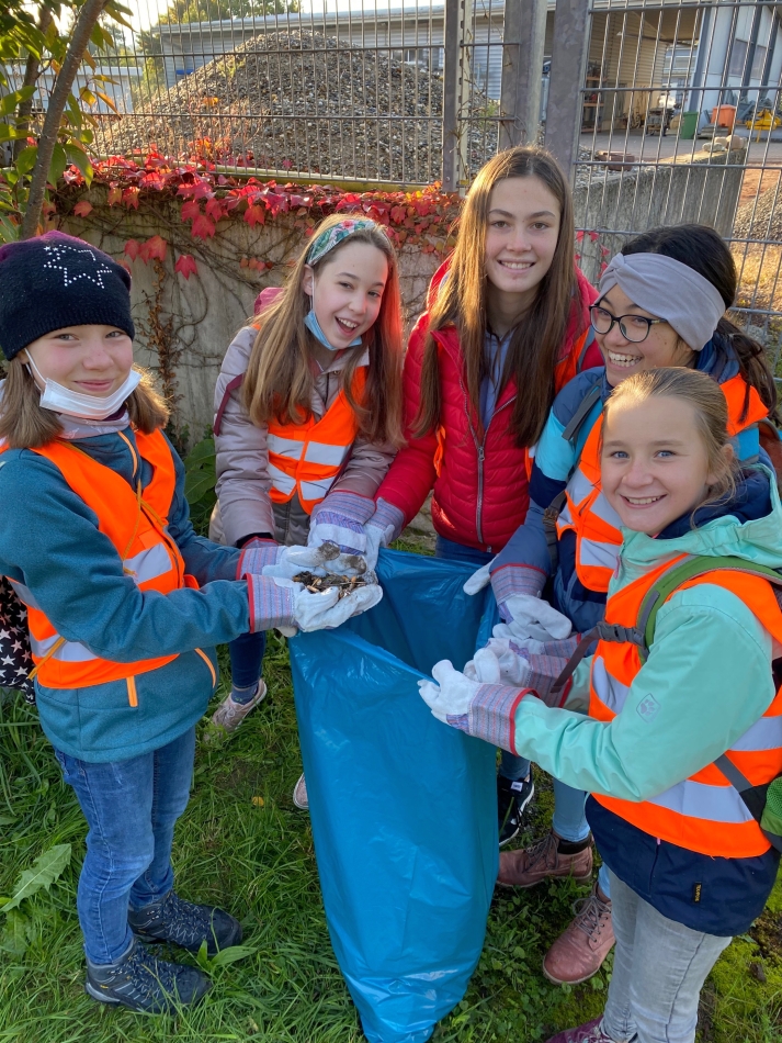 „Ein Klassenkamerad ist wie Super-Mario über Stock und Stein gehüpft und hat jeden Müll eingesammelt! Aber anstrengend war natürlich schon!“, berichten Alyssa und Pia aus der R07a, die mit ihrer Klassenlehrerin Andrea Eisenmann besonders bei einem Kreisverkehr viel Müll einsammeln konnten. „Das war ein sehr schönes Erlebnis!“ sind sich die beiden einig.