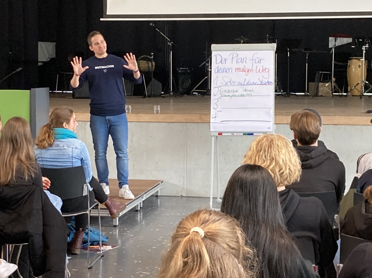 „Mein mutiger Weg“ – unter diesem Motto erhielten die Schülerinnen und Schüler der 9. und 10. Klassen des Gymnasiums der Heimschule St. Landolin Coaching, um für Entscheidungen auf ihrem Weg ins Erwachsenen- und Berufsleben gut gerüstet zu sein. Die Kooperation mit dem professionellen Team um „Mutmacher“ Pascal Keller wurde dank der Förderung durch das Rückenwind-Programm möglich.