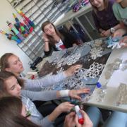 Die Klasse ist stolz auf ihr Werk und freut sich über Besucher der Ausstellung!