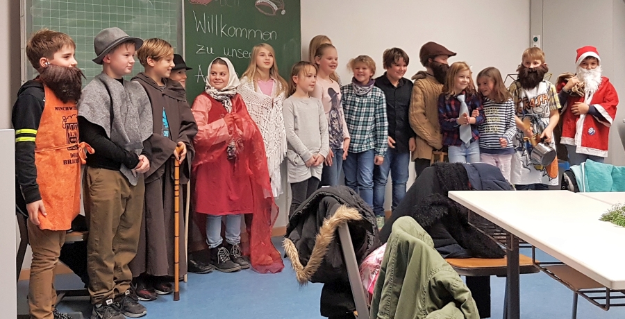 Mit „Morgen kommt der Weihnachtsmann“, vorgetragen von der Bläserklasse, endete die gemeinsame Feier. Die einzelnen Klassen gestalteten anschließend ihre Feier in den jeweiligen Klassenräumen mit eigenen Aufführungen und Beiträgen. Bei Gebäck und Kuchen gab es hier ausreichend Gelegenheit, sich bei Gesprächen besser kennenzulernen, bevor sich alle mit guten Wünschen in die Vorweihnachtszeit verabschiedeten.