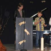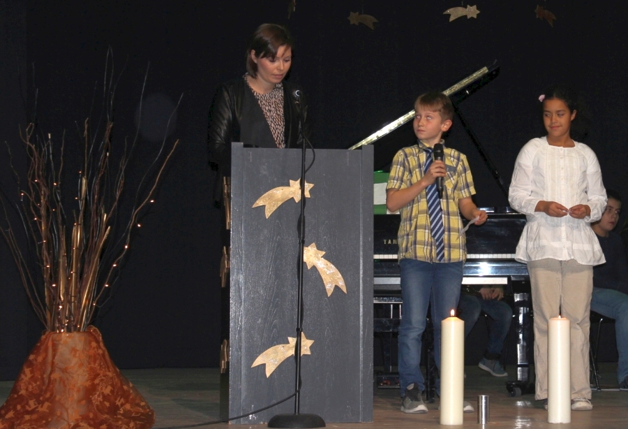Zwischen den einzelnen Programmpunkten wurden die versammelten Gäste von Musiklehrer Werner Wittstock zum gemeinsamen Singen von Adventsliedern eingeladen. Eine Schülergruppe um Lehrerin Mirjam Gronbach vermittelte mit einem besinnlichen Anspiel eine besondere Botschaft: Die Flamme der Liebe, des Glaubens und des Friedens in den Herzen der Menschen kann immer wieder aufs Neue durch die Flamme der Hoffnung entzündet werden.