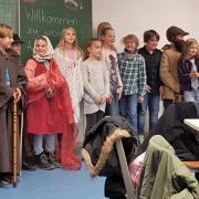 Mit „Morgen kommt der Weihnachtsmann“, vorgetragen von der Bläserklasse, endete die gemeinsame Feier. Die einzelnen Klassen gestalteten anschließend ihre Feier in den jeweiligen Klassenräumen mit eigenen Aufführungen und Beiträgen. Bei Gebäck und Kuchen gab es hier ausreichend Gelegenheit, sich bei Gesprächen besser kennenzulernen, bevor sich alle mit guten Wünschen in die Vorweihnachtszeit verabschiedeten.