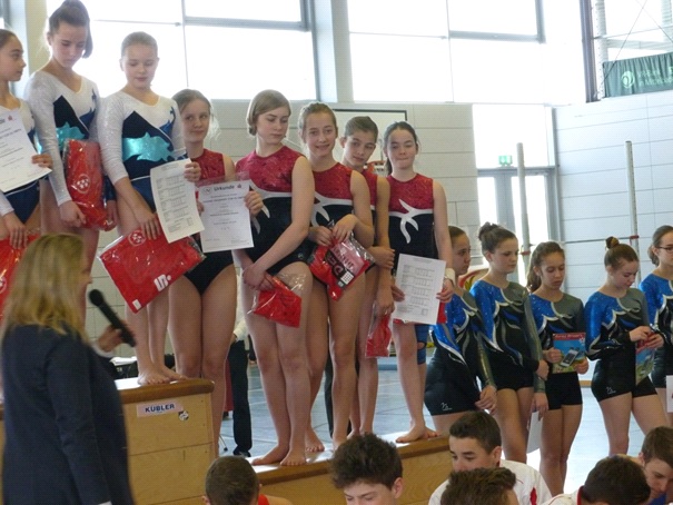 In diesem Jahr konnte sich die Mädchenmannschaft mit Line Rieder, Sarah Reinbold, Sara Haas, Lara Vetter, Madlen Sillmann und Lilly Roser mit den Übungen der Leistungsklasse 4 (LK 4) beweisen. Dabei werden Übungen aus Grundelementen in einer eigenständigen Kür verbunden. Je höher das Turnelement, desto höher fällt die Wertung für die Übung aus.
