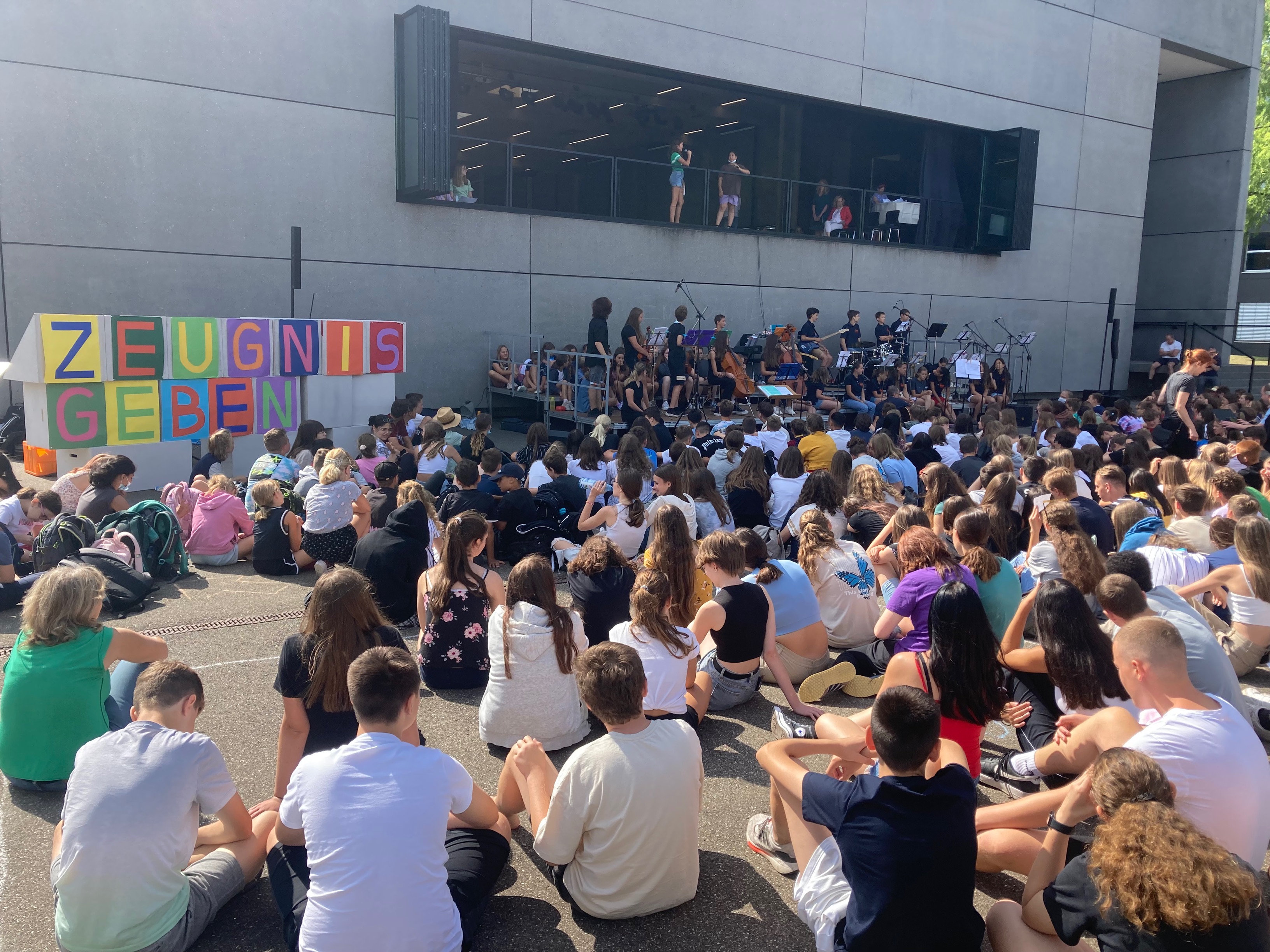 Passend zum Tag der Zeugnisausgabe ging es im Open-Air-Schuljahresabschlussgottesdienst um das Thema „Zeugnisse“. Dabei wurde schnell klar, dass ein „Zeugnis geben“ nicht allein die Bewertung und Benotung von Leistungen meint, sondern auch noch einen anderen Sinn haben kann. So erfuhren die Schülerinnen und Schüler, dass „ein Zeugnis geben“ auch bedeuten kann – überzeugt davon zu sein, dass man durch das eigene Verhalten die Welt ein Stück besser machen kann. Die Schulseelsorgerin und Pastoralreferentin, Dr. Sonja Rupp, regte die Schulgemeinschaft in diesem Zusammenhang dazu an, darüber nachzudenken, welche Personen in diesem Schuljahr durch ihr Verhalten die Welt ein Stück besser gemacht haben – und für welche Personen oder Inhalte wir uns selbst in diesem Schuljahr eingesetzt haben.