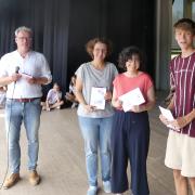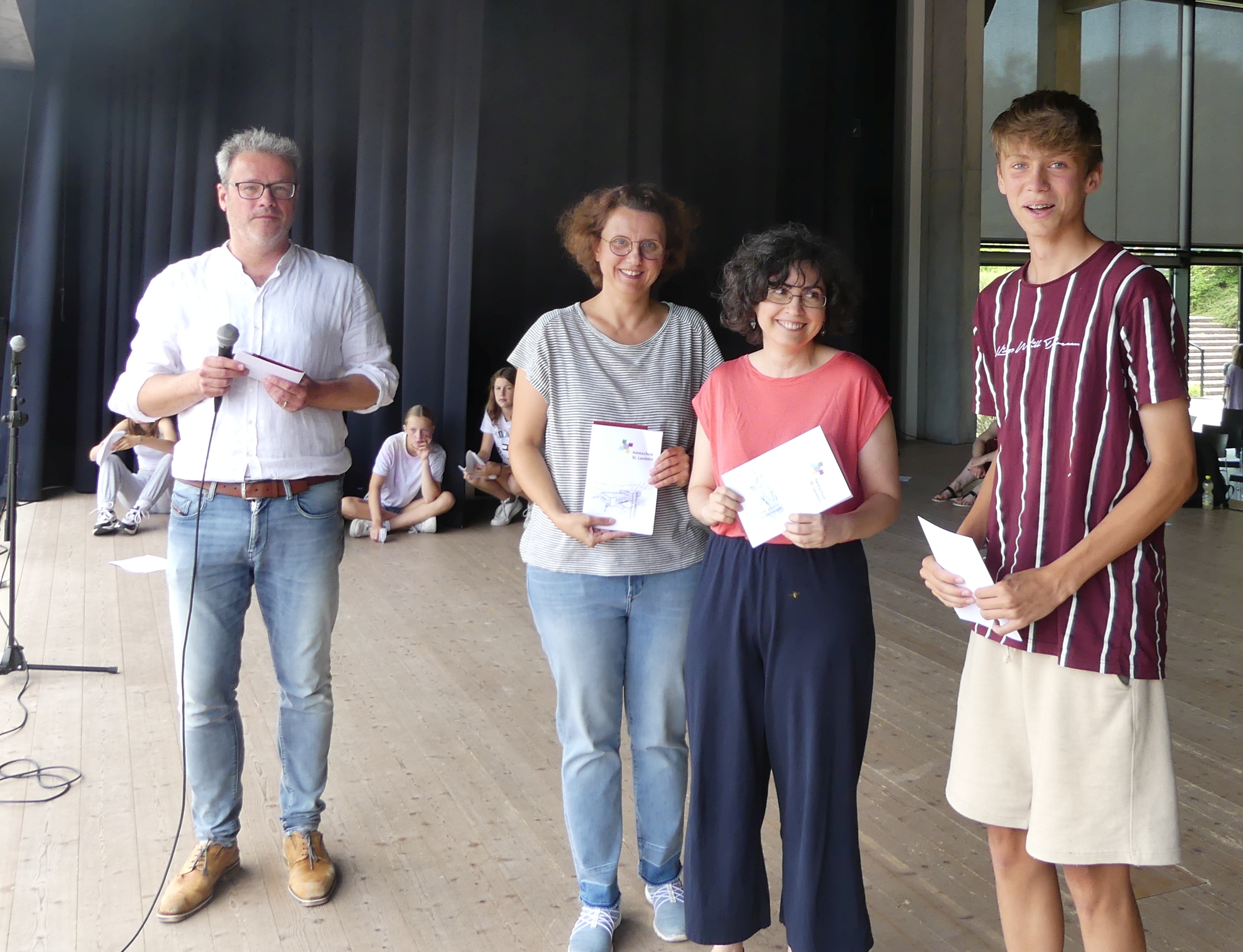 In besonderem Maße für andere eingesetzt haben sich in diesem Schuljahr Levin Hockenjos (G8a) sowie die Lehrerinnen Dana Wurth, Eugenia Escobar und Lilia Gottfried, die ukrainischen Familien eine Unterkunft an der Heimschule geschaffen und die Familien intensiv unterstützt haben. Für ihr großes Engagement wurden sie mit dem Landolinuspreis ausgezeichnet. Denn der Landolin war einer, der Zeugnis von seinem Glauben gegeben hat und so für andere die Welt heller gemacht hat, erklärte Daniel Kurz, Vorsitzender des Fördervereines, bei der Überreichung des Landolinuspreises.