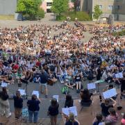 Die TAU-Band und das Schulorchester unter den Leitungen von Daniel Gaschick und Lara Grobshäuser ließen mit ihren Stücken wie „Meine eigenen Grenzen“ eine berührende Stimmung entstehen, welche die Schulgemeinschaft dazu anregte auf das geschaffte Schuljahr zurückzublicken und sich gleichzeitig auch langsam von diesem zu verabschieden. In ihren selbstgeschriebenen Fürbitten gedachten die Sechst- und Siebtklässlerinnen den Schülerinnen und Schüler, die es in diesem Schuljahr persönlich nicht einfach hatten. Das Vaterunser erhielt dieses Mal besondere Aufmerksamkeit, da dieses zunächst im alemannischen Dialekt gebetet wurde. Zum Anschluss wünschte Realschulleiterin Nicola Heckner allen Schülerinnen und Schülern schöne Ferien und schickte diese in ihre Klassenzimmer, um sich nun in der Tat ihr „Zeugnis geben“ zu lassen.