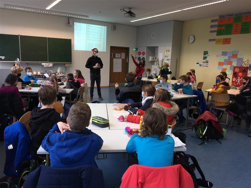 Mit vielen leckeren Plätzchen und heißem Punsch breitete sich schnell eine adventliche Stimmung in den Klassenzimmern aus. Doch es ging nicht nur um das leibliche Wohl! Weihnachtsgeschichten wurden vorgelesen sowie Weihnachtslieder gesungen und zu diesen getanzt. Um den Advent dauerhaft in die Klassenzimmer zu holen, wurden fleißig Sterne aus Transparentpapier für die Dekoration der Fenster gefaltet. Zudem wurde in einigen Klassen mit großer Freude gewichtelt, in einer anderen Klasse schaute der Nikolaus sogar höchstpersönlich vorbei.