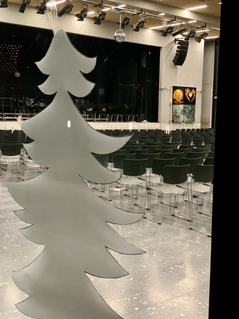 Zu Beginn versammelten sich alle in der festlich geschmückten Aula, um sich mit einem von Herrn Veith gestalteten geistlichen Impuls thematisch einzustimmen. Ausgehend von der Frage, was an Weihnachten nicht fehlen dürfe, leitete dieser über zu einer Geschichte, die uns vor Augen führen sollte, dass die Ankunft Gottes in jedem einzelnen Menschen erkennbar werden kann.