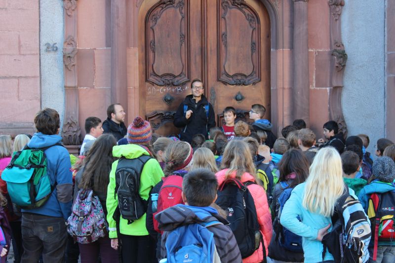 Kaum sind die Fünftklässlerinnen und Fünftklässler am Gymnasium der Heimschule St. Landolin im Unterricht angekommen, heißt es auch schon wieder: Raus aus der Schule! Die gemeinsame Wanderung der Klassenstufe führte nach Ettenheimmünster – und zum Namenspatron unserer Schule.