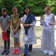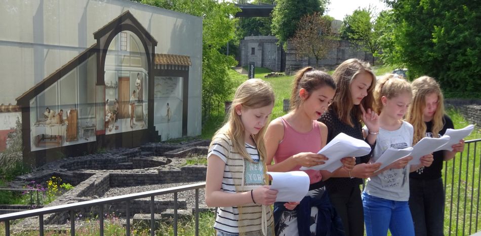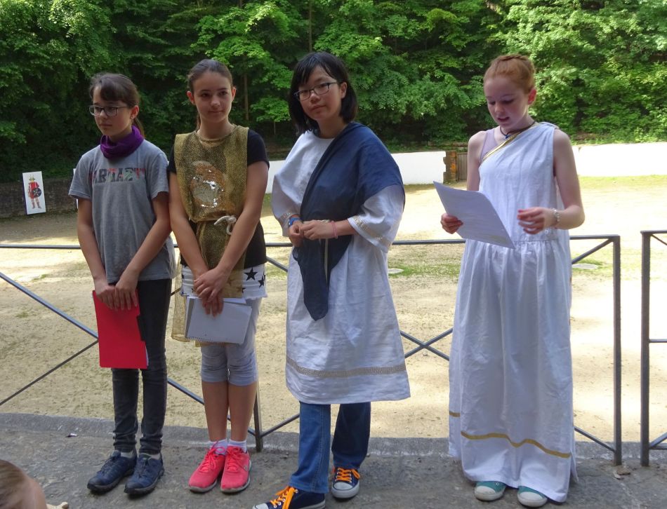 Gemeinsam mit unseren beiden Parallelklassen fuhren wir am 23. Mai 2017 mit dem Bus in die Schweiz zu der ehemaligen Römerstadt Augusta Raurica. Dort begannen wir beim Amphitheater mit unserem Vortrag und dem Rollenspiel, das wir im Vorfeld eingeübt hatten. Die weiteren Stationen waren das Theater, die Thermen, die Curia, das Forum und der Jupitertempel, wo jeweils ein Vortrag präsentiert wurde. So haben wir unseren Mitschülerinnen und -schülern viel Neues über das römische Alltagsleben beigebracht. Es war ein sehr informativer und schöner Tag.