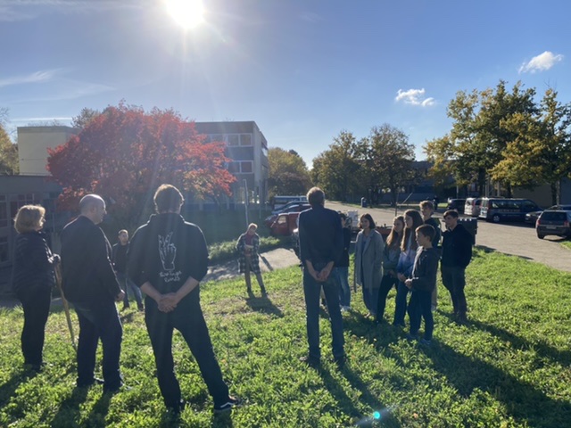 Wolfgang Mutter, Vorsitzender des Lehrbrüdervereins und ehemaliger stellvertretender Schulleiter des Gymnasiums, wandte sich in seinen Worten zur Baumpflanzung vor allem an die Schülerinnen und Schüler der SMV. Neben einem kurzen Rückblick auf die Schulgeschichte und vor allem die christlichen Wurzeln der Schule erklärte er den Gedanken des Geschenks: Diese Bäume sollen lange ein Teil der Schule sein und hier gepflegt werden. Damit tragen sie auch zu einer klimafreundlichen Zukunft bei.