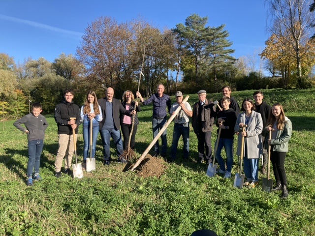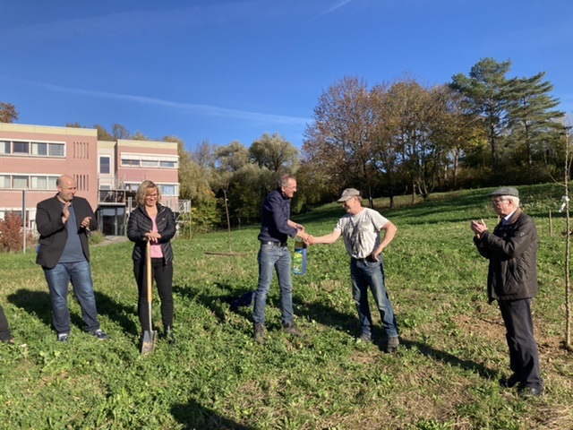 Bäume schlagen tiefe Wurzeln und stehen mit ihrem Wachstum für eine gute Zukunft. Damit sind Bäume passende Symbole für das Jubiläum der Heimschule St. Landolin. Der Lehrbrüderverein als Nachfolgerin der einstigen Gründerväter der Schule, die 1920 in Ettenheimmünster als Vorgängerin der heutigen Heimschule St. Landolin gegründet wurde, stiftete – eigentlich schon vor zwei Jahren zum 100. Geburtstag der Schule – Bäume für das Schulgelände. Da die Pflanzung wegen der Pandemie verschoben werden musste, wurden nun zehn Obstbäume gemeinsam von Vertreterinnen und Vertretern der Schulleitung, der SMV und des Lehrbrüdervereins gesetzt.