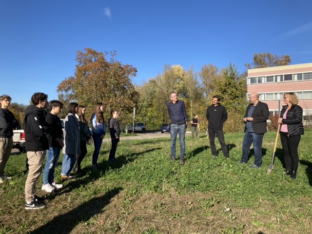 Anschließend wurde ein Baum gemeinsam von den Schülerinnen und Schülern der SMV mit dem SMV-Lehrer Johann-Frederic Freund, Nicola Heckner (Schulleiterin der Realschule), Stefan Kohnert (stellvertretender Schulleiter des Gymnasiums) und Wolfgang Mutter und Rudolf Zimmermann vom Lehrbrüderverein gepflanzt. Als Zeichen der Verbundenheit mit der Stadt Ettenheim wird die gleiche Anzahl an Bäumen verteilt über das Stadtgebiet gesetzt. Je ein Baum wird an den anderen Schulen, die von den Lehrbrüdern in Matzenheim und in Mulhouse im Elsass gegründet wurden, gepflanzt.