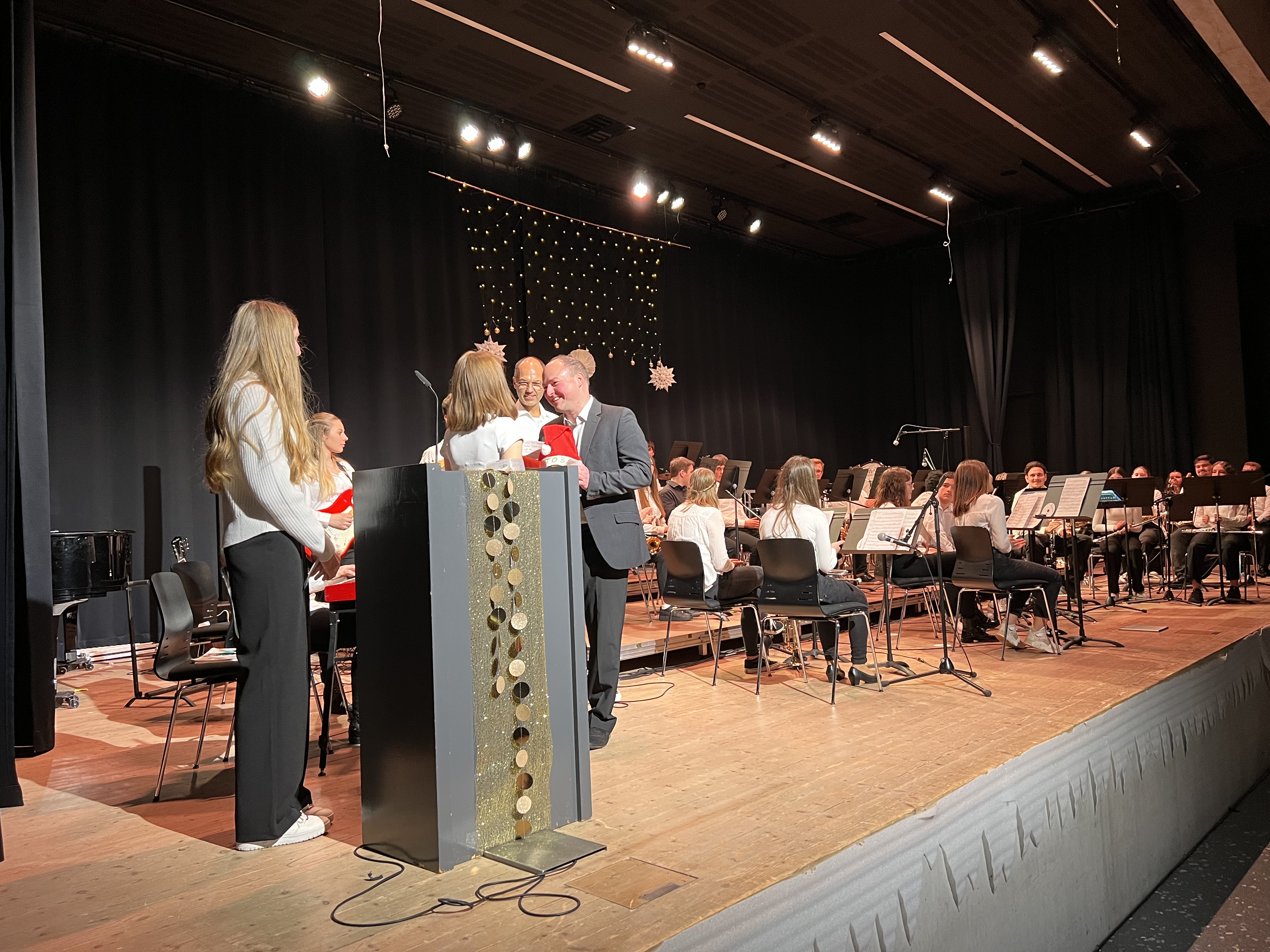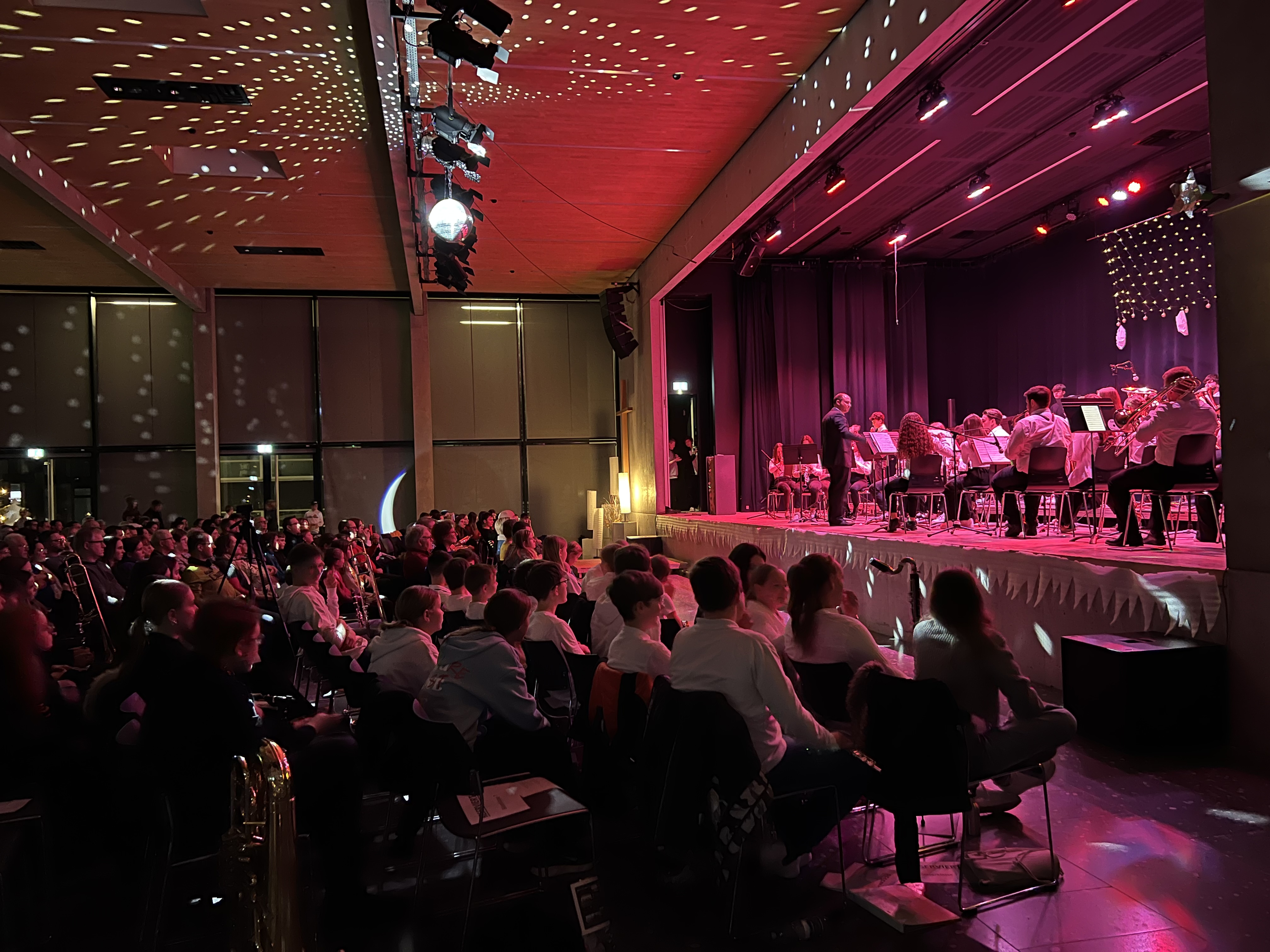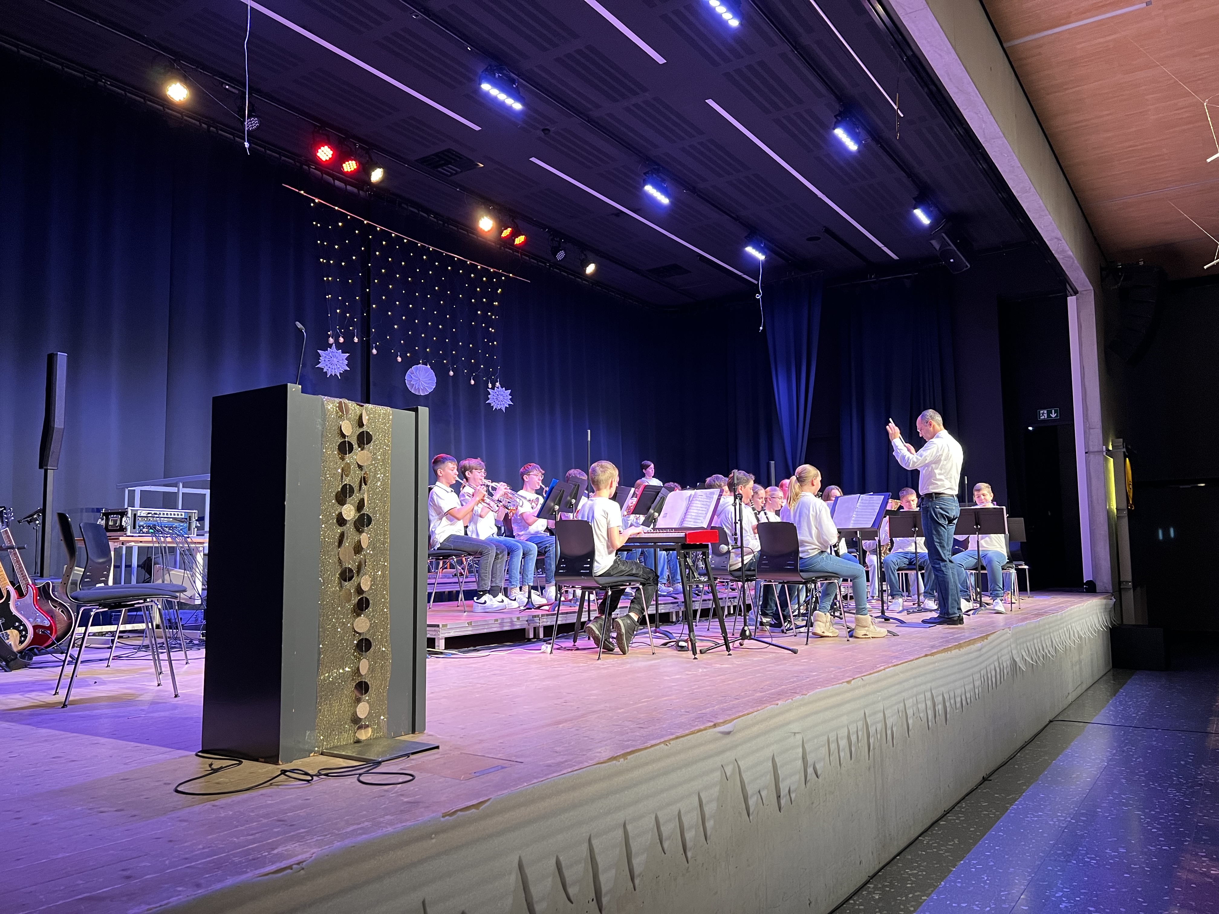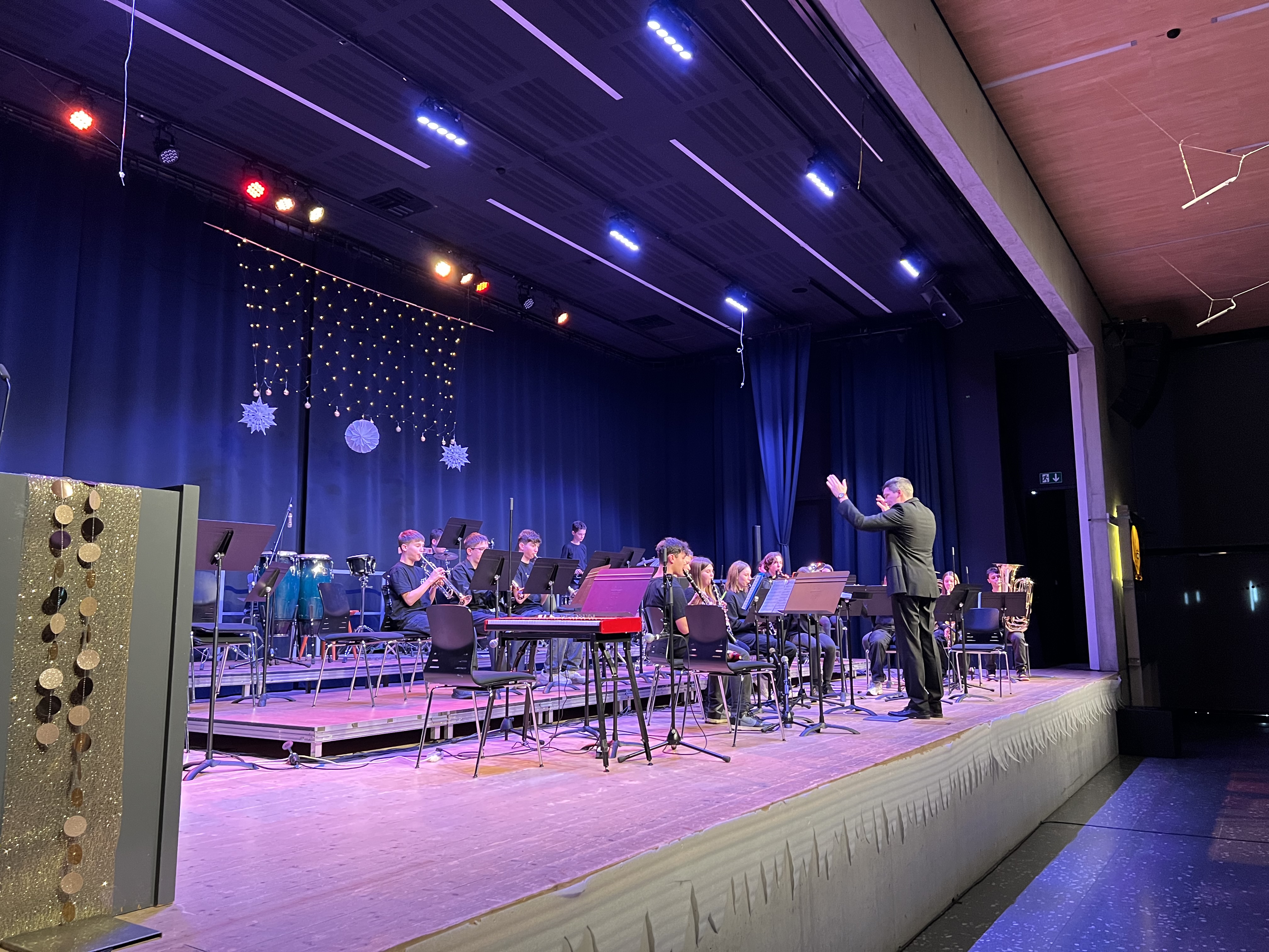 Am vergangenen Mittwoch fand das Winterkonzert der Bläserklassen 7 bis 10 statt, das die Zuhörenden mit einer vielfältigen musikalischen Reise begeisterte. Unter der Leitung ihrer engagierten Musiklehrkräften präsentierten die Schülerinnen und Schüler ein abwechslungsreiches Programm, das von traditionellen Klängen bis hin zu modernen Kompositionen reichte.