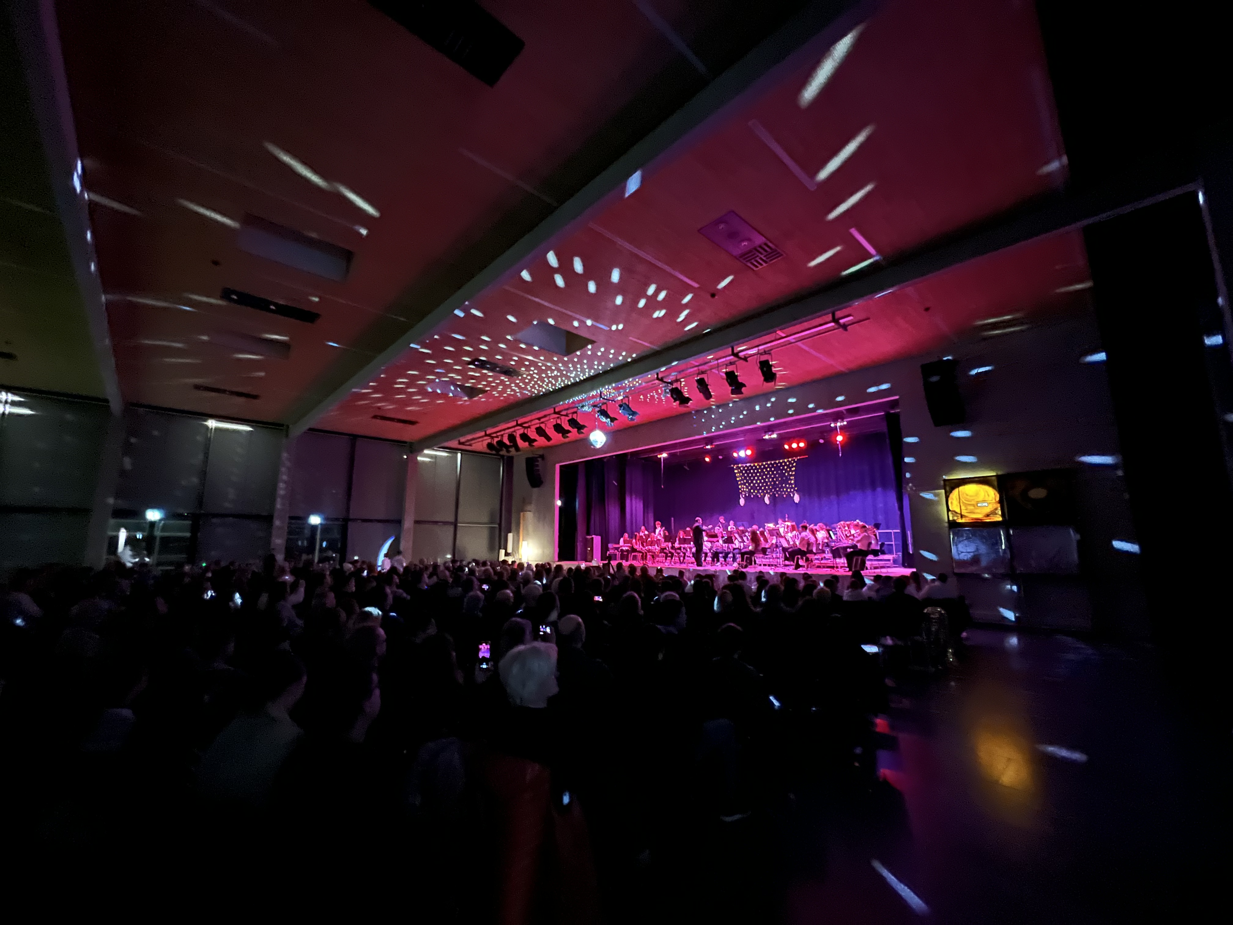 Den krönenden Abschluss bildete die Bläserklasse 10 unter der Leitung von Tobias Schulz. Mit den kraftvollen Stücken „Fanfare and Fireworks“ und “Play that funky music” verabschiedeten sich die Abschlussklassen von ihrem Lehrer, der sie seit der siebten Klasse in der Bläserklasse unterrichtete. Die Zugabe „Can you feel the love tonight“, begleitet von der zauberhaften Beleuchtung der Discokugel, rundete den Abend auf berührende Weise ab.