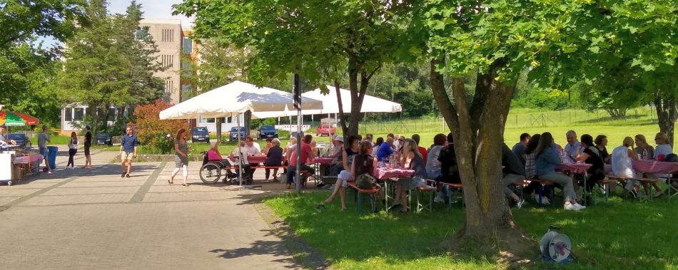 Bei den Schülerinnen und Schülern und den anderen kleinen Gästen sorgten die Hüpfburg und die Wasserrutsche für großes Vergnügen. Das Fest stieß auf große Resonanz und auch die Schulleitungen und einige Lehrer kamen zu Besuch. Ebenso wurde der schöne Brauch fortgesetzt, dass sich ehemalige Mitarbeiterinnen und Mitarbeiter auf dem Fest treffen.