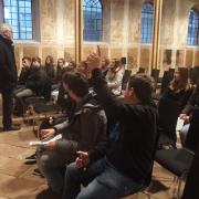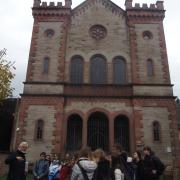Während die erste Gruppe dann mit Herrn Stude die Synagoge betrat, ging die zweite Gruppe auf Erkundungstour durch Kippenheim, um die dortigen Stolpersteine zu finden, und sich mit den Schicksalen der deportierten Juden zu beschäftigen. In der Synagoge erhielten die Schülerinnen und Schüler bei einer Führung jede Menge Informationen über das einstmalige jüdische Leben in der Ortenau und die bewegende Geschichte des Gebäudes. Danach tauschten beide Gruppen und im Anschluss gab es noch viele Fragen, die Herr Stude bereitwillig und kompetent beantwortete. Die Klasse R8b möchten sich bei Herrn Stude für diesen sehr interessanten Tag in Kippenheim ganz herzlich bedanken.