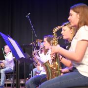 Geografisch blieb auch die Bläserklasse 9 unter der Leitung von Tobias Schulz in den USA. Mit dem Song „Shackleford Banks“ zog die Heimschulgemeinschaft weiter auf eine Insel in Süd Carolina, die berühmt für ihre Wildpferde ist. Weiche melodische Klänge erzählen von der Freiheit und dem Zusammenhalt der wilden Herden. Bei einem Bläserkonzert darf aber natürlich auch der Jazz nicht fehlen! So wurde der Abend schwungvoll mit dem Jazzstandard „Moanin“ von Bobby Timmons und „Where you want to be“ beendet. Bei beiden Stücken zeigte Levin Müller mit seinen Saxofon Soli sein musikalisches Talent. Um einen richtig breiten und groovigen Sound zu erzeugen, erhielt die Bläserklasse 9 zudem Unterstützung von der Band und einigen Aushilfsspielern.
