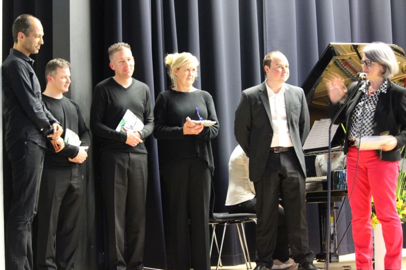 Zur Freude des Publikums waren die drei Gastdirigenten Dr. David Clemmer, Dr. Andrea Brown und Dr. John D. Pasquale an diesem Abend anwesend und dirigierten die Achtklässler je in einem von ihnen eingeprobten Stück. Das gemeinsame Projekt entstand vor über einem Jahr auf einem internationalen Musikerkongress in Chicago und findet mit dem Konzert noch nicht sein Ende. Die Schüler fahren am 07. Mai nach Schlitz bei Fulda, um am Hessischen Bläserklassentag und im Anschluss bis einschließlich Freitag als Seminarorchester am Yamaha Bläserklassenkongress teilzunehmen.