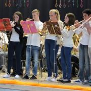 Am Blasorchesterkonzert der Realschulklassen sieben bis zehn gaben zunächst die Siebtklässler den Ton an. Nach der Begrüßung durch Realschulleiterin Ulrike Hugel spielten sie unter der Leitung von Tobias Schulz einige Stücke für ganze Blasorchester. Die gute Vorarbeit, die in der fünften und sechsten Klasse geleistet wurde, zahlt sich hier aus. Die Schülerinnen und Schüler präsentieren bereits ein tolles Zusammenspiel und ein gutes Gefühl für den Rhythmus und glänzten auch mit vier Solisten.