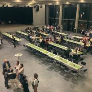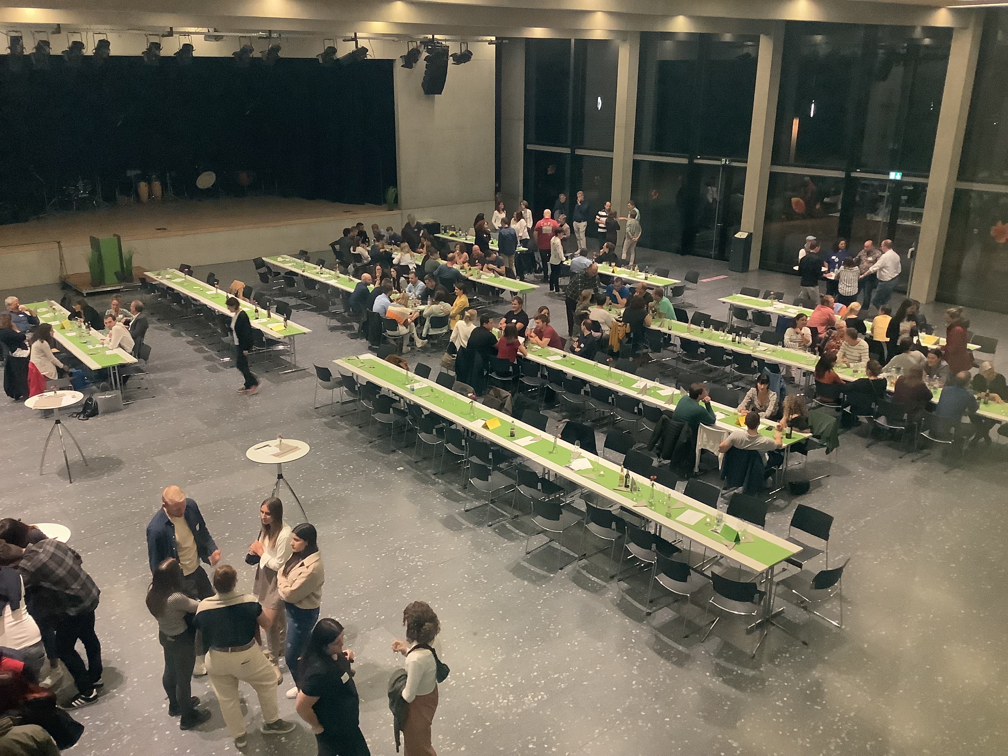 Gut gelaunt und spirituell gestärkt konnten die Ehemaligen nun zum Sektempfang gehen und sich auf ein leckeres Essen, welches das Küchenteam um Uwe Zimmermann zauberte, freuen. Nach spontanen Schulhausführungen, zu denen anwesende Kolleginnen überredet wurden (die Ehemaligen wollten ihre alten (neuen) Räume sehen und riechen), ging man in ein gemütliches und gesprächiges Zusammensein über.