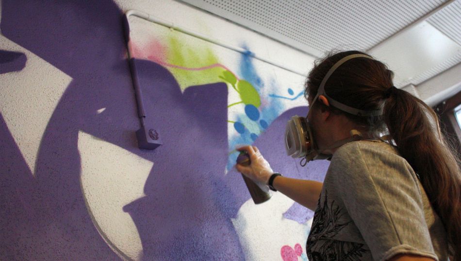 - David (J2) wollte schon lange das OZ umgestalten. Er war in der Gruppe für den Einkauf und die Finanzen aktiv und mitverantwortlich für die Organisation und Gestaltung des Graffitis.