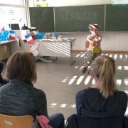 Ségolène Bulot, Lektorin aus Frankreich und Vertreterin des FranceMobil-Programms im Großraum Freiburg, präsentierte den teilnehmenden Klassen der Klassenstufe 7 bis 9 eine Kombination aus kultur-, kreativitäts- und kommunikationsorientierten Aktivitäten. Zum Einsatz kamen dabei sowohl Spiele, Bilder und aktuelle frankophone Musik als auch pantomimische und theaterdidaktische Lehr-Lern-Elemente. Das thematisch ebenso impuls- wie abwechslungsreiche Programm motivierte die Schülerinnen und Schüler dazu, einen vertieften Blick auf das Nachbarland Frankreich zu werfen: gesellschaftlich, landeskundlich und nicht zuletzt zielsprachlich.
