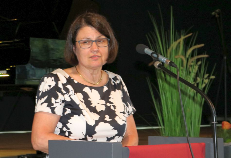 Aus diesem Schatz wurden auch Miriam Almstadt, Bernhard Wagner und Ursula Stampfer verabschiedet. Miriam Almstadt unterrichtete zehn Jahr am Gymnasium in den Fächern Mathematik, Englisch und Latein, kam aber auf unzähligen von ihr organisierten und begleiteten Klassen-, Austausch- und Studienfahrten, die sie bis in die USA und nach Australien führten, mit zahlreichen Schülern weit über den Unterricht hinaus in intensiven Kontakt. Das Fernweh zieht sie nun in den Auslandsschuldienst nach Brüssel. Nach 37 Jahren als Realschullehrer für Deutsch und Musik geht Bernhard Wagner, der bereits als Schüler das damalige Aufbaugymnasium der Heimschule St. Landolin besuchte, in den Ruhestand. Ulrike Hugel würdigte den jahrzehntelangen Einsatz für einen lebendigen Unterricht und den Aufbau der Bläserklassen, die inzwischen fest zum Profil unserer Schule gehören. Ebenso verabschiedet sich Ursula Stampfer in den Ruhestand, die 42 Jahre lang Deutsch und Sport am Gymnasium unterrichtete. Nicht nur die Dauer ihres Engagements auch ein Blick auf die Aufgaben, die sie in dieser Zeit übernahm, beeindrucken: Sie engagierte sich für den Ausbau und Erhalt der Sportanlagen, der Schülerbücherei, des Schulsanitätsdienstes. Sie initiierte vor Jahren die Ehemaligentreffen, die ein wichtiges Element unserer Schulkultur geworden sind, leitete über Jahre die Fachschaft Deutsch und brachte beispielsweise in der Sorge um die Lehrercafeteria ihren Einsatz für das Wohl des Kollegiums zum Ausdruck. So verabschiedete sie sich mit dem Wunsch ans Kollegium, die guten Beziehungen untereinander zu pflegen. Als ein Zeichen dafür, dass dies den drei Kolleginnen und Kollegen gelungen ist, können die sehr persönlichen Verabschiedungen durch die Fachschaften gelten: Mit Liedern, Gedichten, humorvollen Rückblicken und persönlichen Geschenken wurden die drei besonderen Persönlichkeiten, die unser Kollegium verlassen, gewürdigt.