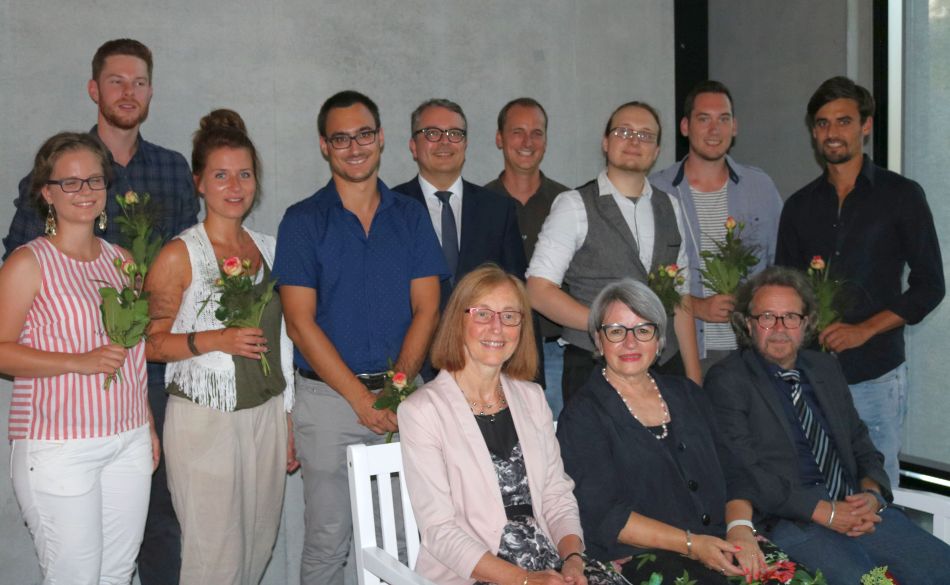 Aus dem Kreise des Lehrerkollegiums wurden ebenso die Referendarinnen und Referendare Sarah Limberger, Lara Uttenweiler, Clemens Straub und Falko Zipfler verabschiedet. Die bisherigen Referendare Christoph Klieber, David Krüger und David Seifert wurden zugleich als künftige Kollegen am Gymnasium willkommen geheißen. Ein besonderes Dankeschön richtete Eberhard Pfister an Nico Rautenberg, der nach erfolgreich absolviertem Referendariat im vergangenen Schuljahr noch mehrere Monate als Krankheitsvertretung am Gymnasium unterrichtete.