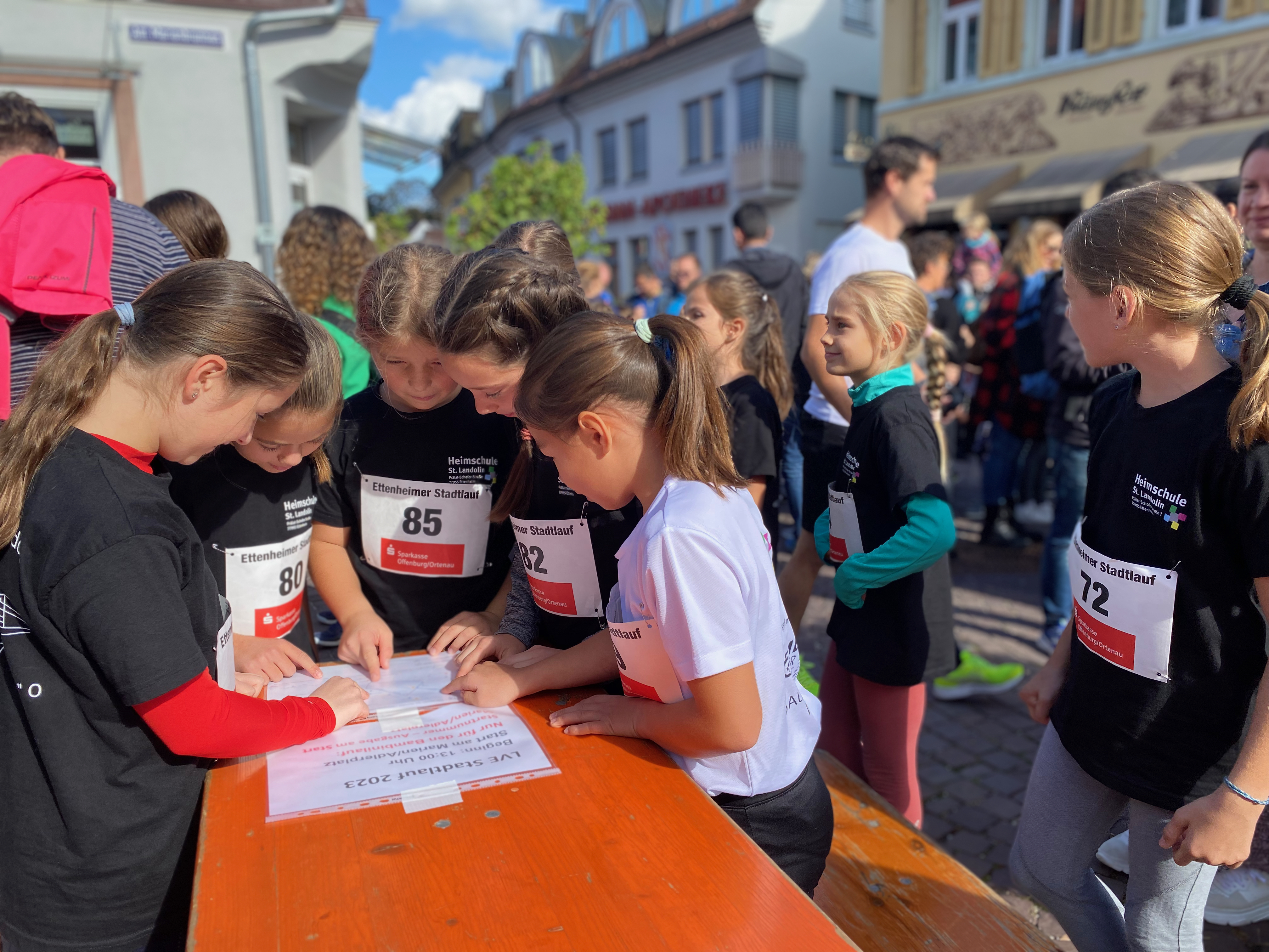 „Auf die Plätze - Feeeertig - Los“: Der LV Ettenheim hatte im Oktober wieder zum Ettenheimer Stadtlauf in vier Kategorien geladen (Bambinis, Schülerlauf über 2 Kilometer, Teamlauf über 4 Kilometer und Hauptlauf über 10 Kilometer). Beim Schülerlauf nahmen von der Heimschule sensationelle 22 Klassen teil – etwa 140 Läuferinnen und Läufer aus dem 180-köpfigen Teilnehmerfeld kamen von unserer Schule. So war die Ettenheimer Altstadt gut gefüllt mit HSL-Trikots und alle hatten viel Spaß bei der gemeinsamen Bewegung bei bestem Laufwetter.