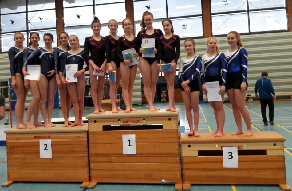 Die Kunstturnerinnen Emilia Stubert, Emma-Luise Luem, Hannah Buderer, Sorah Reinbold, Lara Vetter erreichten in der ersten Runde bei den Kreismeisterschaften mit dem 3. Platz die Qualifikation für das Bezirksfinale. Dieses fand – wie auch schon der erste Wettkampf – in Lahr statt. Auch hier turnten alle einen guten Wettkampf, sodass es am Ende für den 2. Platz reichte. Damit war die Qualifikation für das RP-Finale erreicht. Dort trafen sie dann nicht nur auf die direkten Konkurrenten aus Gengenbach, sondern auch auf die Mannschaft des Otto-Hahn-Gymnasiums Furtwangen. Der Wettkampf verlief – vor allem am Stufenbarren – nicht ganz erwartungsgemäß, sodass vor dem letzten Gerät, dem Sprung, die Turnerinnen aus Gengenbach 2,1 Punkte Vorsprung hatten. Doch die Heimschülerinnen schafften es, ihr ganzes Können abzurufen: Am Ende des Wettkampfes lagen sie mit 0,05 Punkten in Führung. Das ist der kleinstmögliche Abstand im Kunstturnen. Damit hat es die Mädchenmannschaft nach 2016 wieder geschafft, ein Landesfinale zu erreichen.
