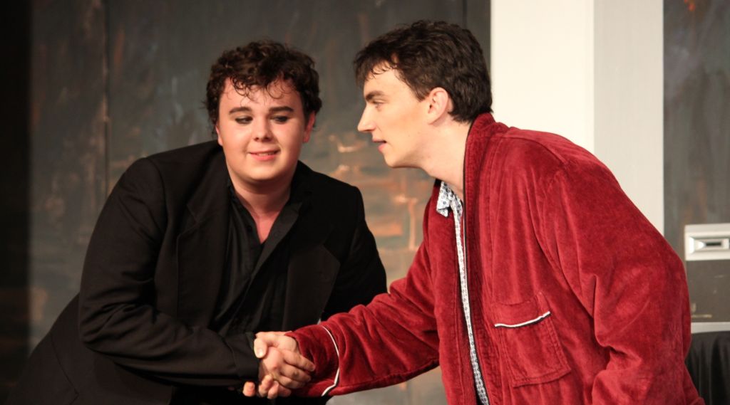 „Habe nun, ach…“, „Zwei Seelen wohnen, ach…“ Ach, ach, ach – so ächzt und zaudert sich der Protagonist Faust durch die gleichnamige Tragödie von Johann Wolfgang von Goethe. Überhaupt Goethes „Faust“: ein Klassiker. Im Rahmen einer Schulaufführung droht das hässliche Wort der „Pflichtlektüre“. Und der besorgte Zuschauer hofft, dass sich der Abend nicht durch abgeleierte Verse ächzt. Und dann das: Der Literatur- und Theaterkurs der Heimschule St. Landolin inszeniert nach der Dramaturgie und Regie von Carsten Ernst einen zugleich tiefsinnigen, witzigen und berührenden „Faust“, in dem die existentiellen Themen des Stückes freigelegt werden.
