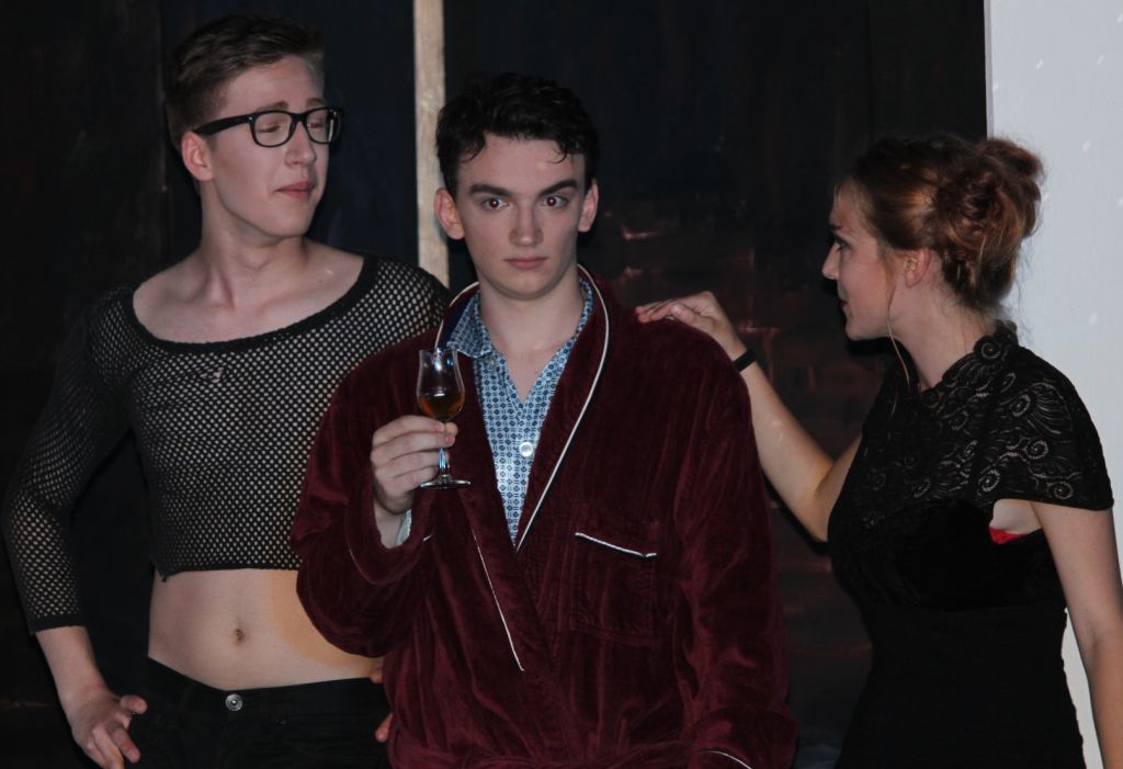 Zu Gretchen: unschuldig, liebenswürdig, weißes Sommerkleid (Frederike Kölzner). Hier nun nimmt die Tragödie ihren Lauf: Die Liebe zwischen Faust und Gretchen ist zum Scheitern verurteilt. Gretchens Freundin Marthe (Carina Beilke) – frivol, aufgedonnert, Leopardenrock – wird zum Werkzeug einer perfiden Intrige, die für Faust und Gretchen düster endet. Eine professionelle Licht- und Tontechnik (Luca König) und nicht zuletzt das dem Wahnsinn verfallene Gretchen (Sandra Seng) erwirken eine Intensität, die den Zuschauer mit in die Abgründe nimmt, die die Figuren durchleben. Was sagt uns das?