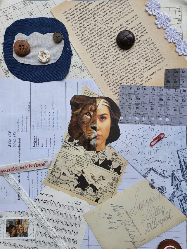 Im Kunstunterricht von Kathrin Weber erstellten Schülerinnen und Schüler Collagen, in denen sie verschiedene Materialien und Gestaltungstechniken zu einem Gesamtwerk zusammenführten. Hier zeigen wir die Arbeiten von Selma Ketterer (G7a), Valentin Bühler (G8ab) und Gabriel Wiedwald (G7a).