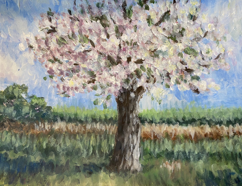 „Blühender Baum“: So nannte Sophie Enghauser (G10d) dieses Bild, in dem sich die Eindrücke des Frühlings widerspiegeln, den wir über viele Tage im April und Mai erleben durften. Es entstand beim heimischen Malen zum Thema „Spätimpressionismus“ im Profilunterricht Kunst von Matthias Biehler.