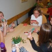 Am nächsten Morgen haben wir mit Erlebnispädagogen aus Freiburg Spiele gespielt. Am Nachmittag haben wir in Gruppen, ohne Erwachsene, eine GPS-Tour gemacht. Mitten in der Tour hat es angefangen zu regnen, aber wir mussten trotzdem weitermachen. Nach dem Abendessen haben wir den Film „Ronja Räubertochter“ angeschaut. Danach mussten wir leider schlafen gehen.