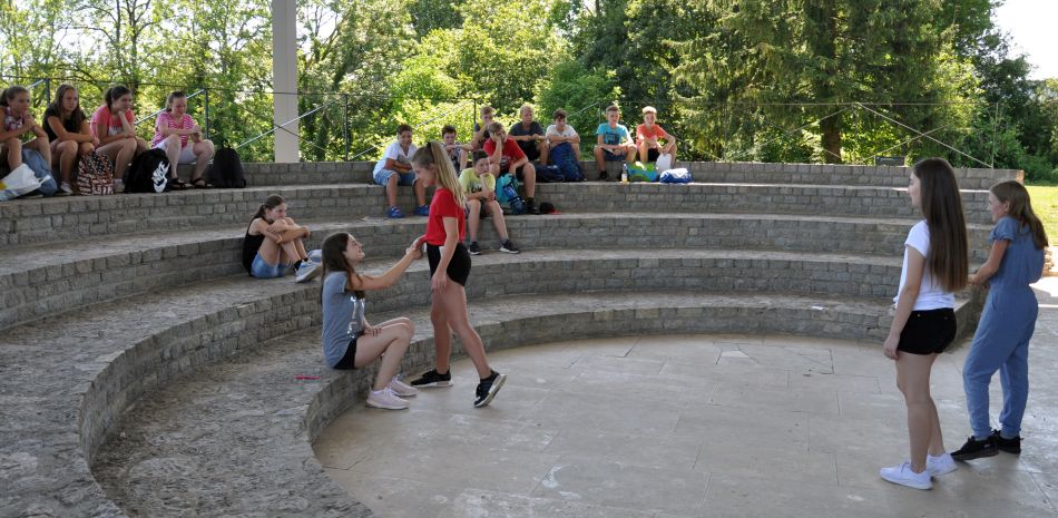In den vorherigen Geschichtsstunden hatten sich die Schüler in Gruppen von zwei bis acht Schülern aufgeteilt. In diesen Gruppen wurden Präsentationen und Rollenspiele vorbereitet, denn jede Gruppe stellte ein Gebäude vor. Darum konnte jede Gruppe nach der Ankunft in Kaiseraugst zu ihrem Gebäude gehen und die Präsentation üben. Nach einer Stunde trafen sich alle Klassen an unterschiedlichen Gebäuden. Dann erlebten sie eine Führung durch „Augusta raurica“, bei der es an jedem Gebäude eine Präsentation von Mitschülern gab.