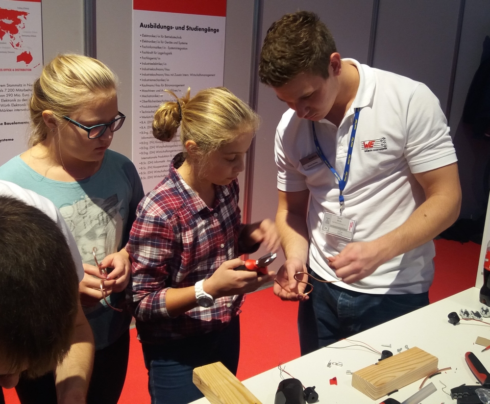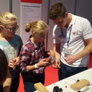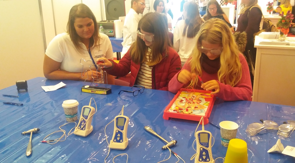Mit dem thematischen Schwerpunkt der Elektrizität konnten die Schülerinnen und Schüler an über 120 Ständen experimentieren, bauen, hinterfragen und forschen. So konnten sie das Geschicklichkeitsspiel „Heißer Draht“ selbst zusammenbauen und mit nach Hause nehmen, sich mit chemischen oder physikalischen Analysemethoden auf Spurensuche in Kriminalfilmen begeben oder ihre Lieblingsmusik durch Unterbrechung des Stromflusses durch ihre eigenen Körper stoppen oder spielen lassen und und und…