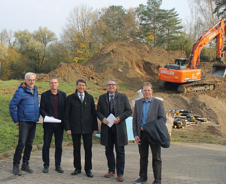 Im Rahmen eines Vororttermins stellten Bürgermeister Bruno Metz, Eberhard Pfister, Direktor der Heimschule St. Landolin, Ralph Schwörer, stellvertretender Direktor der Schulstiftung der Erzdiözese Freiburg, Peter Blaser, Geschäftsführer der ratio energie GmbH und Martin Oswald für die Fernwärme Ettenheim den aktuellen Stand der Bauarbeiten vor.
