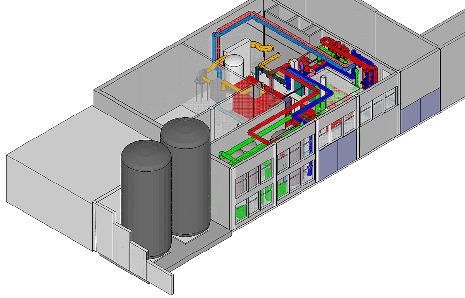 Bisher wurden rund 82 % der insgesamt benötigten Wärme über Holzenergie und 14 % über das Gas-Blockheizkraftwerk gedeckt. Nur in Notfällen, bei Wartungsarbeiten und sehr niedrigen Außentemperaturen wurden die beiden Öl-Kessel zur Deckung der Spitzenlast eingesetzt (4 %). Das BHKW war nun allerdings in die Jahre gekommen; es musste entweder erneuert oder durch ein anderes Konzept ersetzt werden. An seine Stelle tritt nun künftig die solarthermische Anlage und wird die weiterhin bestehende Wärmeerzeugung aus einem Holzhackschnitzel-Kessel und zwei Öl-Kessel (nur für die Spitzenlast) nicht nur ergänzen, sondern hauptsächlich den sommerlichen Wärmebedarf in der Regel komplett decken. Der Holz-Heizkessel bleibt während der Sommermonate abgeschaltet.