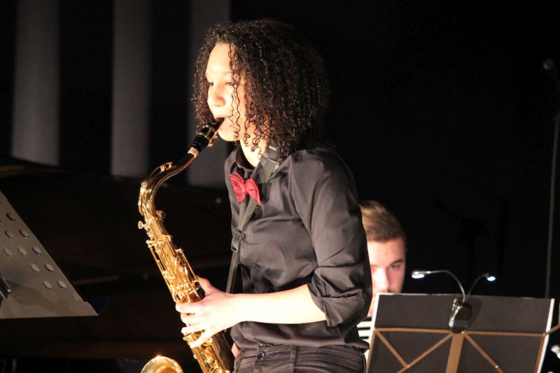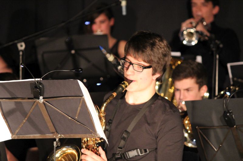 Diese Aufführung war ganz sicher ein musikalisches Highlight, welches über die Grenzen eines normalen Schulkonzerts hinausging. Hier stimmte einfach alles. Die Big-Band der Heimschule und der Chor „Move- your-voice“ boten hervorragende Musik mit zahlreichen Solisten und Solistinnen. Fetzige und bekannte Melodien waren ausgewählt und auf eine ausgefeilte Tontechnik geachtet worden. Jana Stephan moderierte das Ganze zusammen mit Kim Feldhan ausgesprochen professionell. Die Big-Band unter der Leitung von Markus Albu startete ihren Auftritt mal anders, aus dem Publikum heraus, nahm auf diese Weise die Zuhörer von Anfang an gleich emotional mit. Ins Ohr gehende Swing-Musik wie „American Patrol“ und Evergreens wie „Pink Panther“ taten ein Übriges, das Publikum zu begeistern. Als Big-Band-Solisten glänzten Lukas Andlauer, Jana Stephan und Simon Maier an der Trompete, Cedric Linn am Alt-Saxophon und Barbara Eisele am Tenor-Saxophon, Marius Hägle an der Posaune und Tom-Jordy Ruesch am Bass. Mit dem Titellied „Skyfall“ aus dem gleichnamigen James Bond-Film nahm die Big-Band das Publikum mit auf Verbrecherjagd zusammen mit Kim Feldhan in der Gesangsrolle.