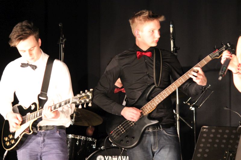 Der Schulchor „Move your voice“ unter der Leitung von Tobias Schulz setzte den Reigen eingehender, wohl bekannter Melodien aus der Rock- und Popszene fort. Begleitet wurde der Chor von der Chor-Band bestehend aus Lars Meier und Tom-Jordy Ruesch am Bass, Hannes Oswald und Ruben Kilchling am Schlagzeug sowie Luca Kollmer am Klavier. Anke Fischer, Lea Siefer, Laura Förster, Constanze Zapf und Katharina Kaltenbach als Gesangssolistinnen nahmen das Publikum mit auf einen Highway durch die englischsprachigen Charts. Sie wurden dabei musikalisch vom Streicherorchester unter der Leitung von Indra Wilhelm begleitet. Mit „Don’t stop believin’“ von der amerikanischen Musikband Journey setzte der Chor zusammen mit der Band und Luca Kollmer als Gesangssolist ein weiteres Glanzlicht in diesem grandiosen Schulkonzert.