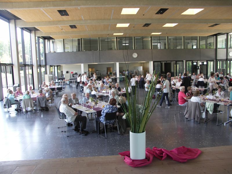 Das Broßmerfest für die 100 ältesten Bürgerinnen und Bürger der Stadt fand zum elften Mal in der Heimschule statt. Abwechselnd wird es von Realschule und Gymnasium betreut. In diesem Jahr sorgte die Klasse R7d mit ihrer Klassenlehrerin Ulrike Schmidt für den Service beim traditionellen Mittagessen. Den musikalischen Rahmen gaben Steven Miscenko am Flügel und die Bläserklasse R7b unter der Leitung von Christoph Breithack. Das jährliche Fest geht auf eine Stiftung des Ettenheimer Ehrenbürgers Hugo Broßmer zurück.