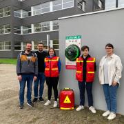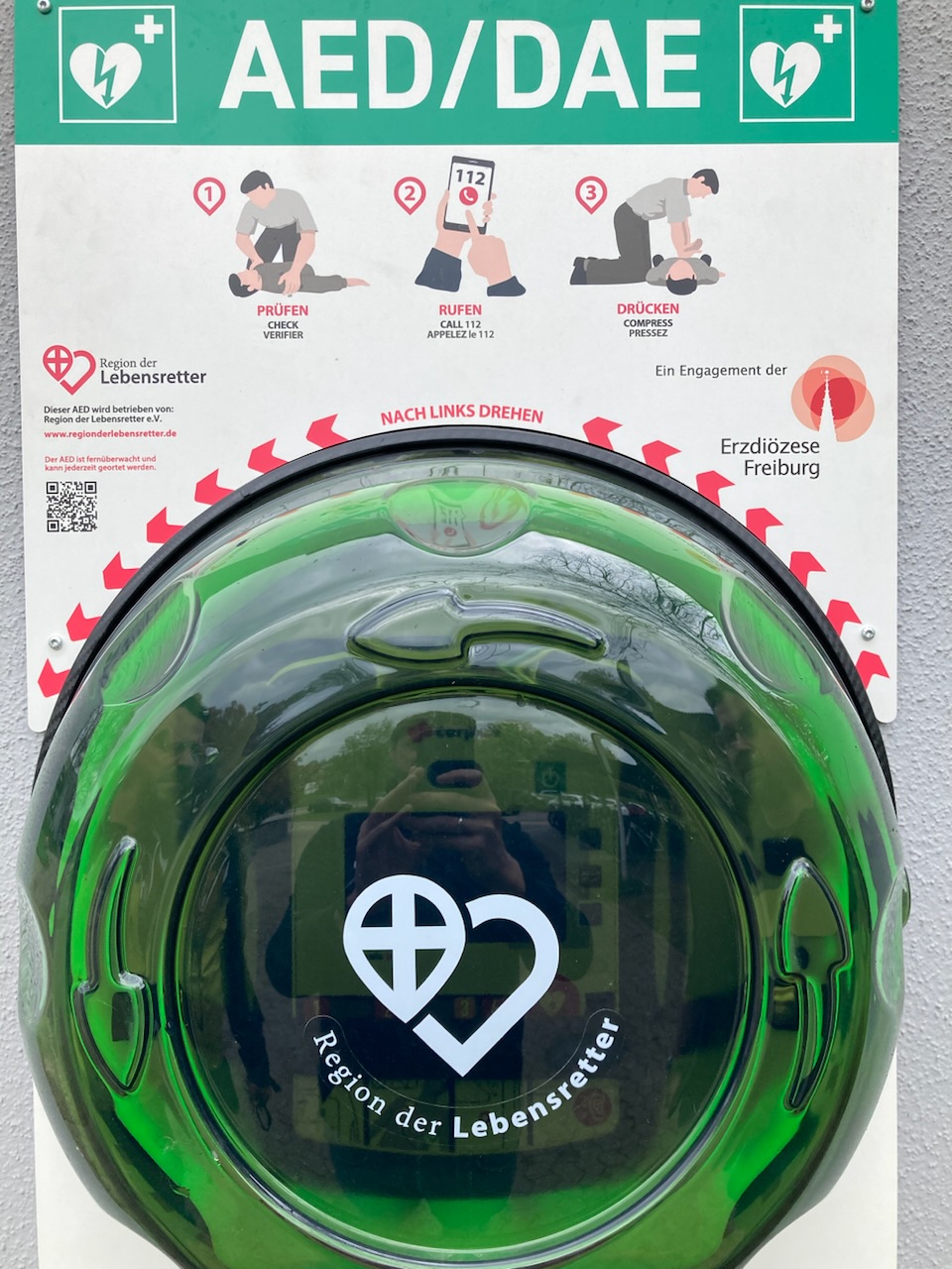 Bei einem Herz-Kreislaufstillstand kann ein DefibrillatorLeben retten. Weil dabei jede Sekunde zählt, helfen automatisierte Defibrillatoren dabei, dass auch Laien als Ersthelfer reanimieren können. Zwei solche Automatisierten Externen Defibrillatoren (AEDs) sind bereits seit Jahren im Gebäude der Heimschule St. Landolin stationiert. Nun wurde in der Busschleife auch ein öffentlich zugänglicher AED installiert.