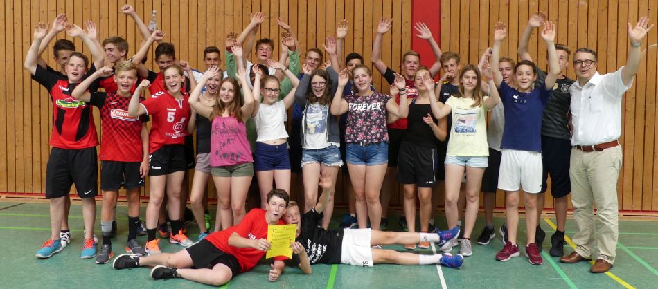 Am 17. und 18. Juli fanden an der Heimschule St. Landolin wieder die beliebten schulartübergreifenden Klassenwettbewerbe „Heimschulympics“ statt. Sie sind aus den traditionellen Bundesjugendspielen entstanden und werden immer am Ende des Schuljahres in den Klassenstufen 7 und 8 durchgeführt. Herr Bing, Herr Broßmer und Frau Sobotta organisierten die Wettkämpfe, in denen etwa 200 Schülerinnen und Schüler in sechs verschiedenen Disziplinen (Schwimmen, Tischtennis, Hockey, Handball, Volleyball und Basketball) klassenweise gegeneinander antraten, um die Heimschulsieger zu küren.