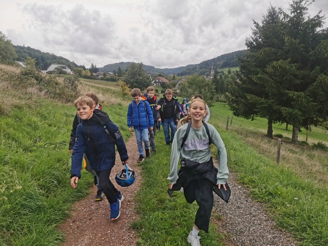 Bei anfangs trübem Herbstwetter ging es zuerst nach Münchweier, wo am Spielplatz gemeinsam Pause gemacht wurde. Die Schülerinnen und Schüler hatten hier Zeit, um zu quatschen, zu spielen und neue Leute aus anderen Klassen kennen zu lernen.